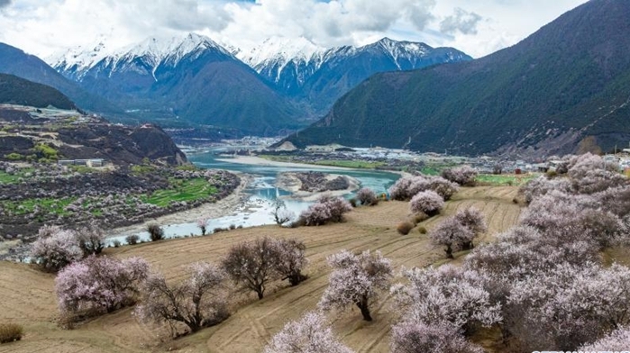 Mit steigenden Temperaturen stehen die Pfirsichbäume in Nyingchi in voller Blüte und ziehen zahlreiche Touristen an.